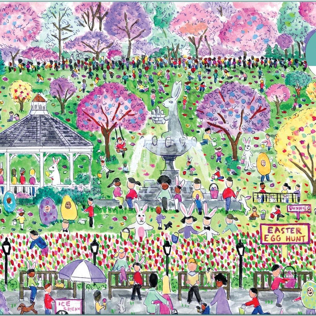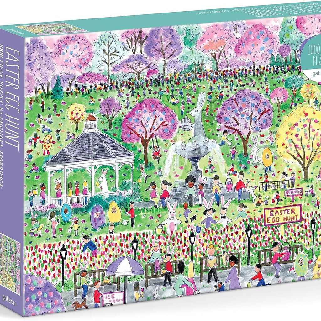 Easter Egg Hunt is a quality 1000-piece jigsaw puzzle from Galison's Michael Storrings collection