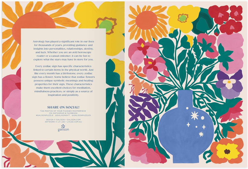 Zodiac Flowers is a quality 1000-piece jigsaw puzzle by Galison.