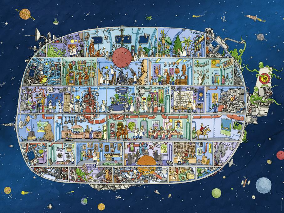 Spaceship is a quality 1500-piece puzzle from Heye and is packaged in an exclusively designed triangular box.