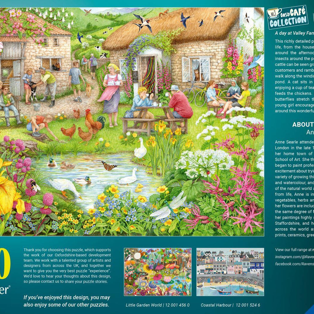 Valley Farm Cafe is a premium quality 1000-piece cardboard jigsaw puzzle from Ravensburger’s Cosy Café Collection.