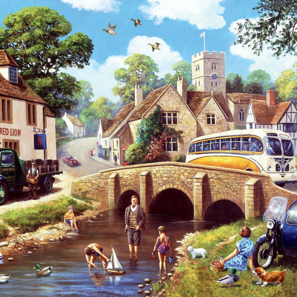 Day by the River is a premium quality 1000-piece cardboard jigsaw puzzle from Ravensburger.
