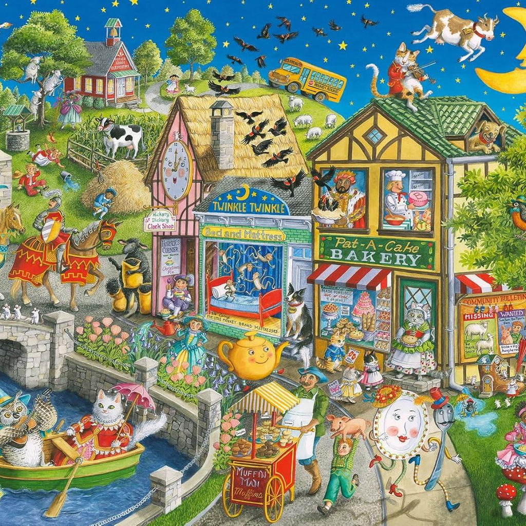 Mother Gooseville is a premium quality 1000-piece cardboard jigsaw puzzle from Ravensburger.