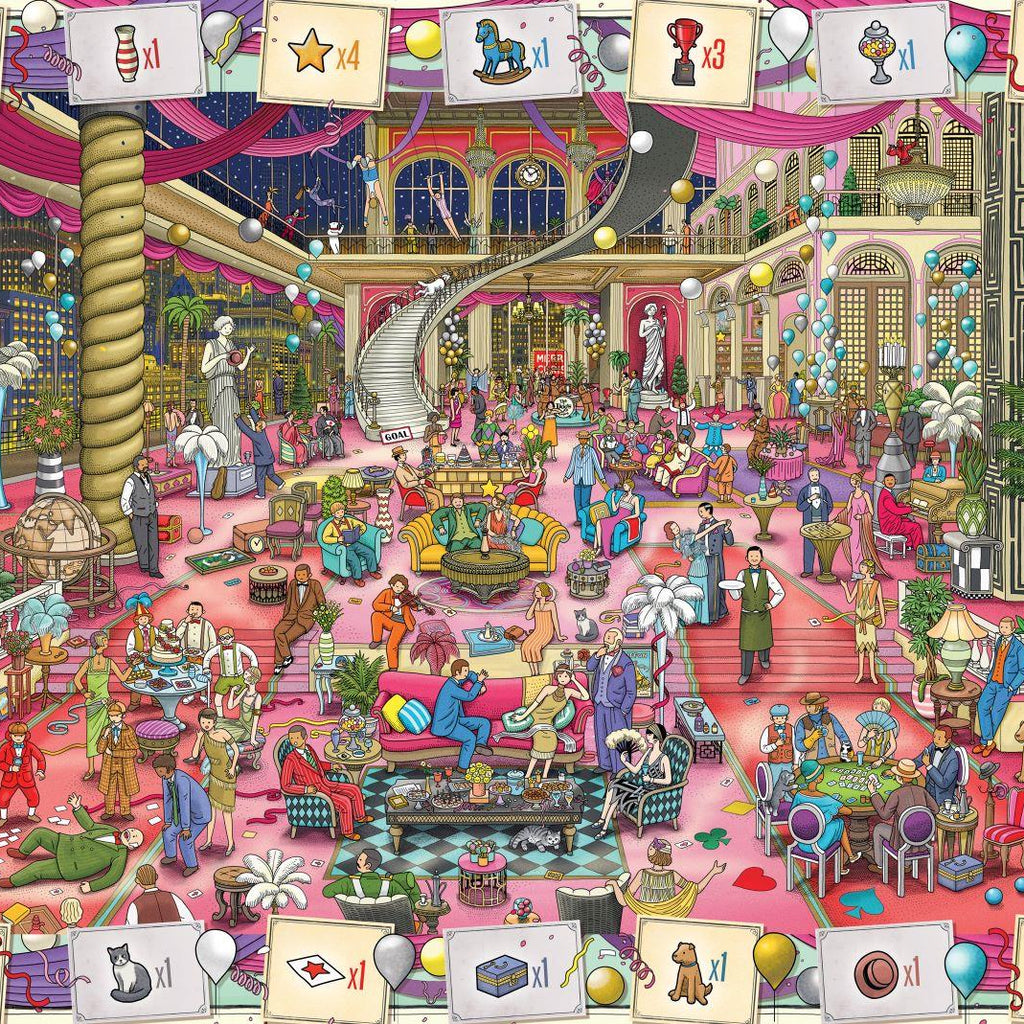All the detectives are enjoying a Christmas Eve party in the Grand Ballroom. But Lord Candy has collapsed!! Can you solve this 1000 piece jigsaw puzzle and help Maze Detective find the antidote, a small purple bottle marked with a skull and crossbones? Mr X has a hot-air balloon waiting to carry away the Maze Cube, can you find the four spare keys in the ballroom and unlock the mystery?