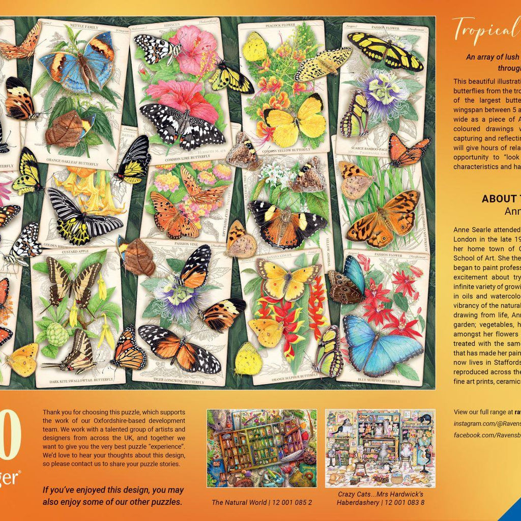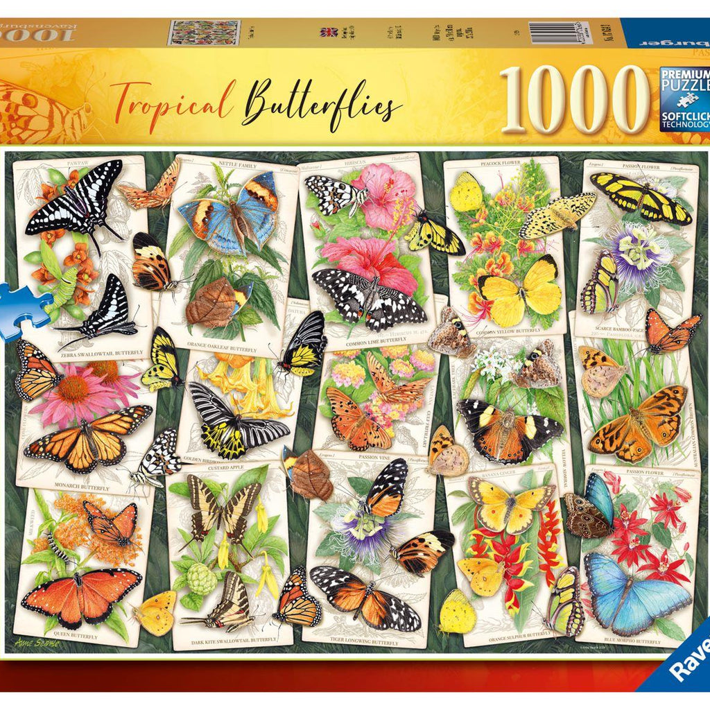 Tropical Butterflies is a premium quality 1000-piece cardboard jigsaw puzzle from Ravensburger