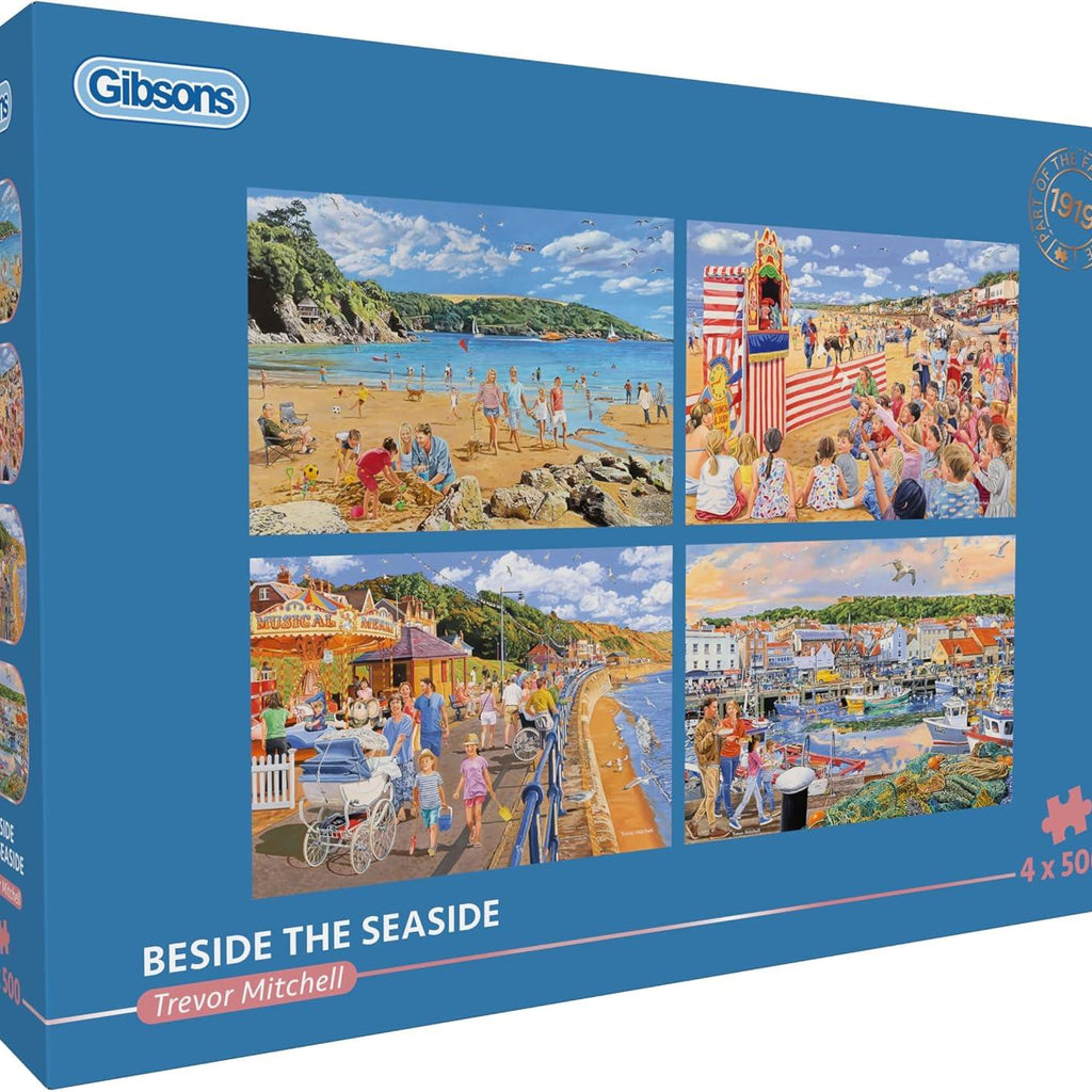 Beside the Seaside is a multi-box of jigsaws which includes four quality 500-piece jigsaw puzzles by Gibsons.
