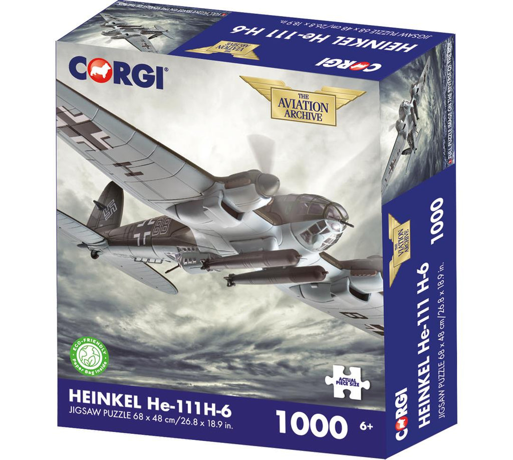 Heinkel He-111 H-6 is a premium quality 1000-piece jigsaw puzzle from Kidicraft’s Corgi Collection.