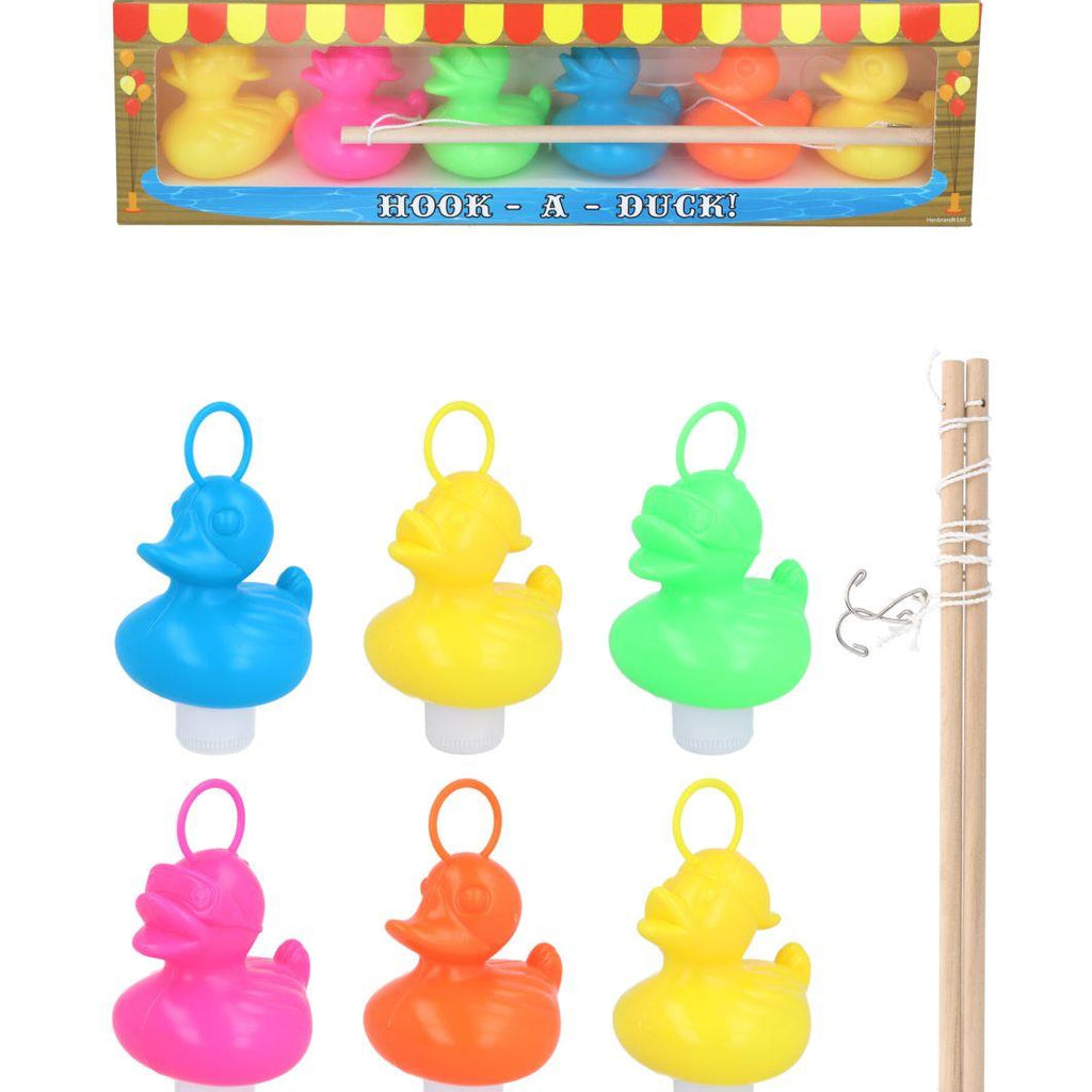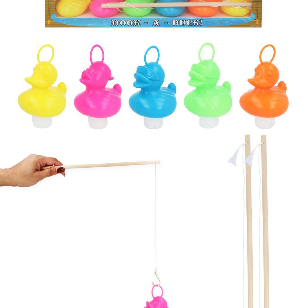 Hook-a-Duck Game - 6 Weighted Plastic Ducks 7cm with Hooks & 2 Rods