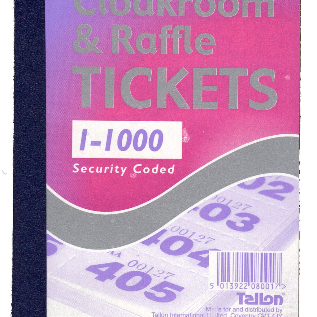 Book of 1000 good quality, easy to tear off double-numbered raffle / cloakroom tickets.