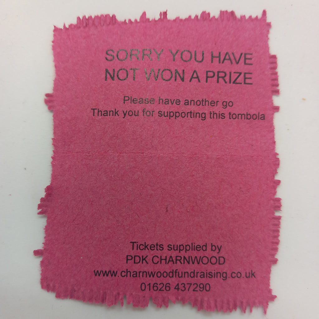 These losing tombola tickets are easy to tear with perforated tear-off edges, each reading "SORRY YOU HAVE NOT WON A PRIZE".
