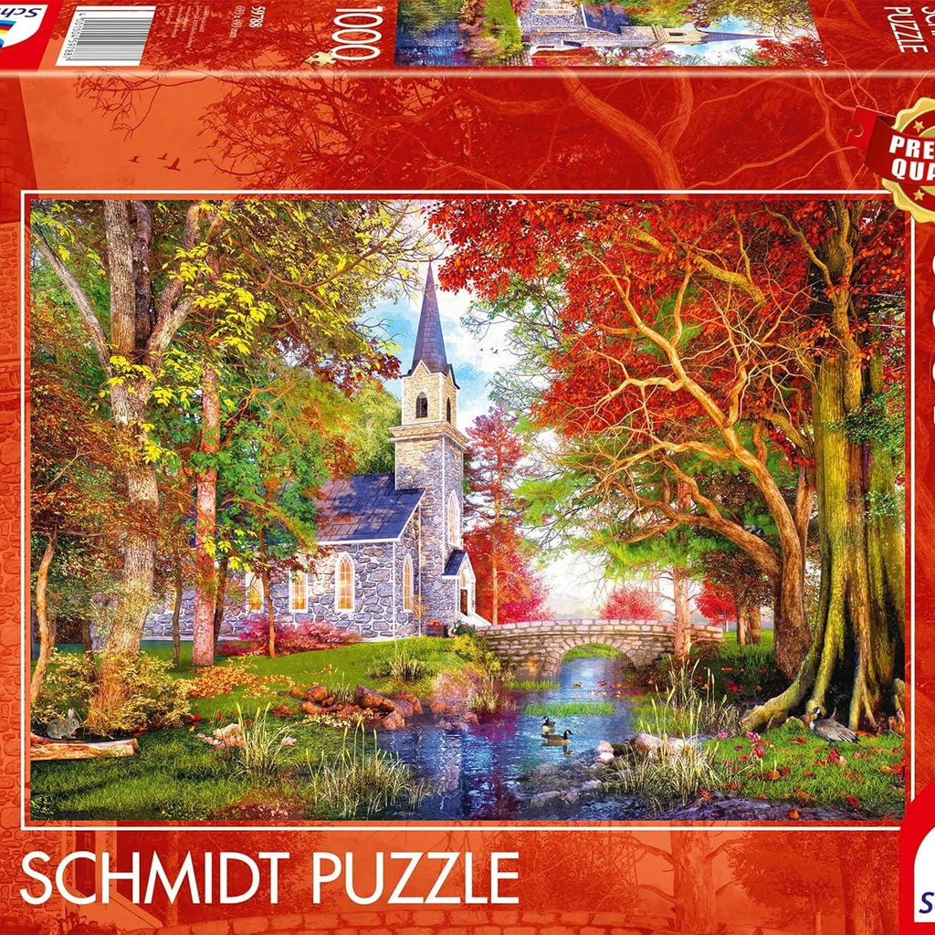 Chapel in Autumn Magic is a 1000-piece premium quality jigsaw puzzle from the Schmidt Collection.
