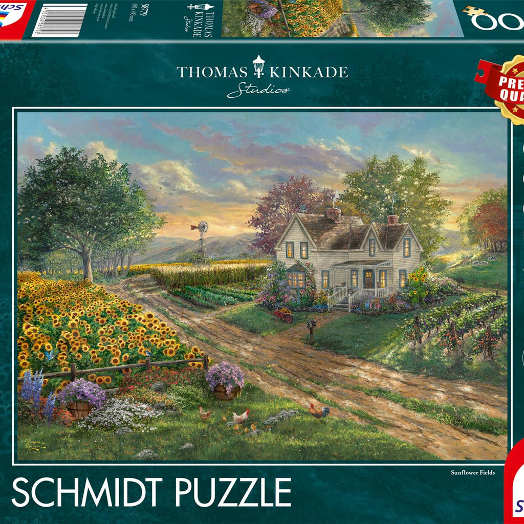 Sunflower Fields is a 1000-piece premium quality jigsaw puzzle from the Schmidt Kinkade Collection.