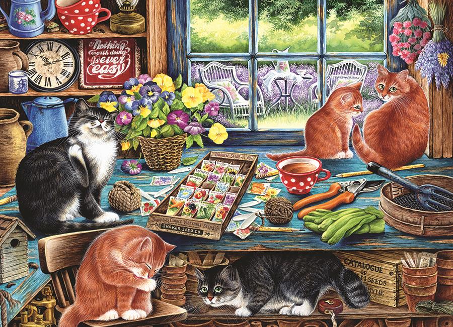 Cats Retreat is a premium quality 1000-piece jigsaw puzzle from Cobble Hill.