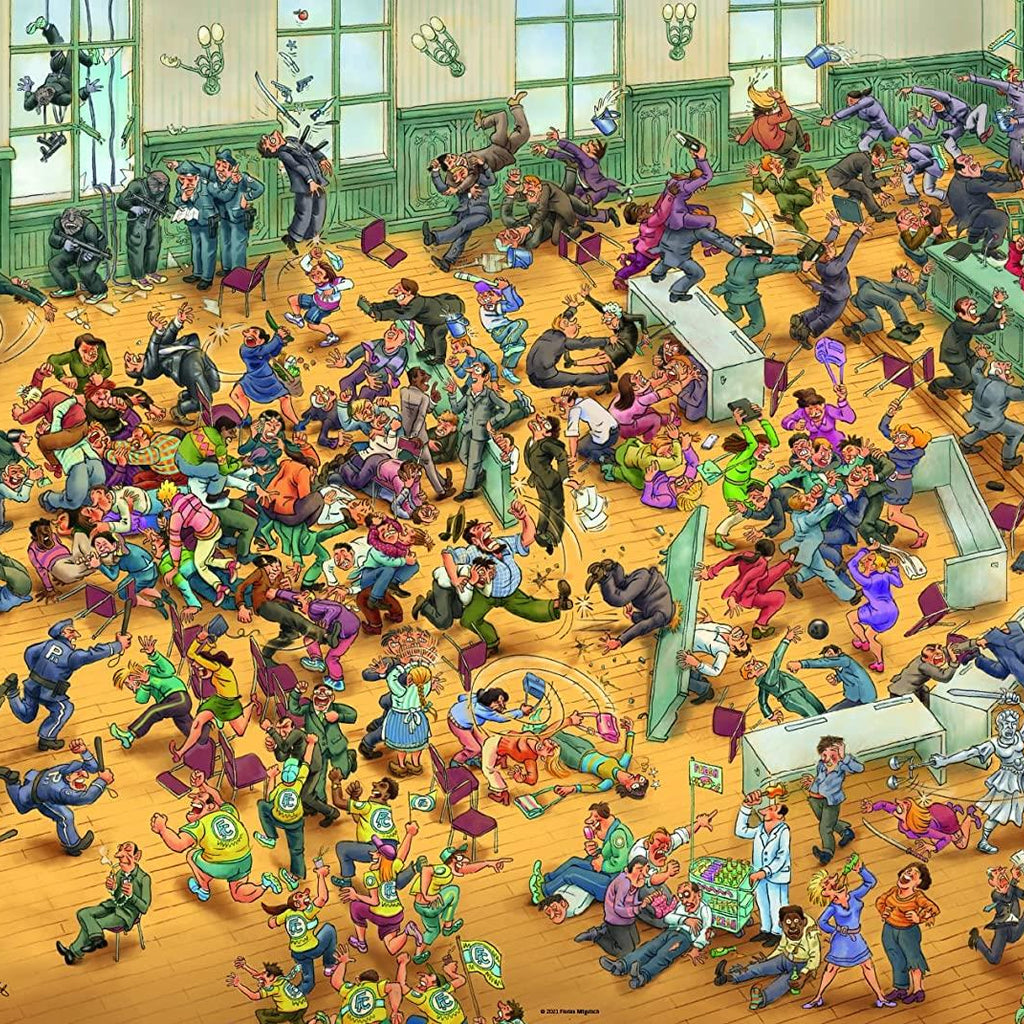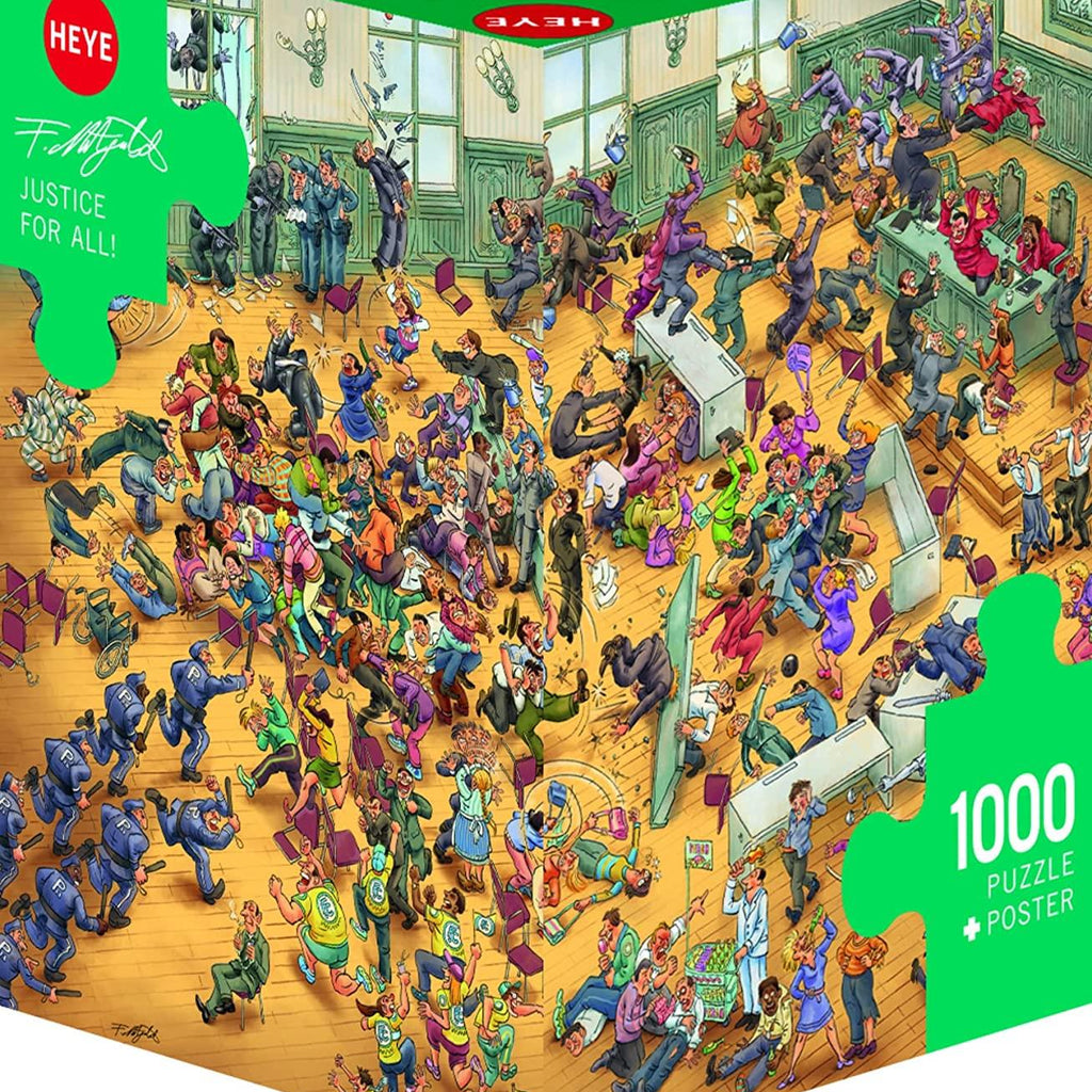 Justice For All! is a quality 1000-piece puzzle from Heye and is packaged in an exclusively designed triangular box.