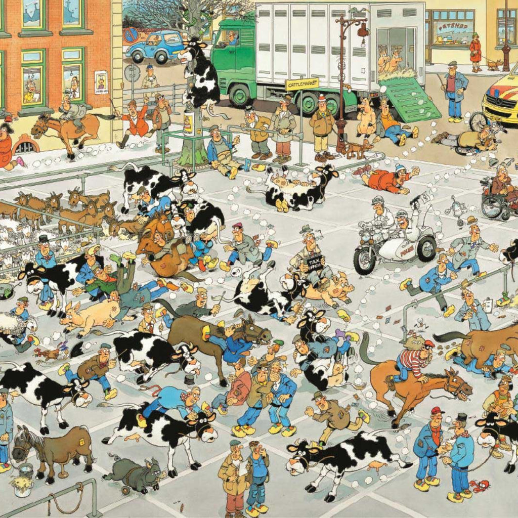 The Cattle Market is a comical and detailed 1000-piece jigsaw puzzle which depicts a chaotic scene where you see the unexpected and where nothing goes according to plan. As with all of Van Haasteren’s illustrations, you are sure to find this puzzle extremely enjoyable while laughing at all of the individual illustrations.