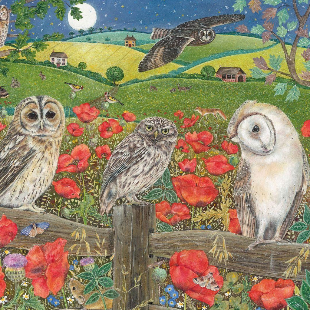Owls in Poppy Fields is a quality eco-friendly 500-piece jigsaw puzzle from Otter House.