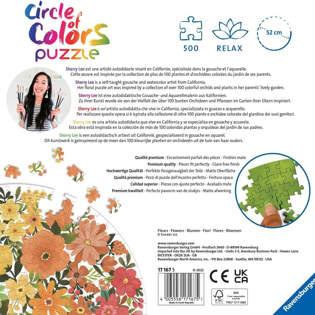Flowers is a premium quality 500-piece circular jigsaw puzzle from Ravensburger’s Circle of Colours Collection.