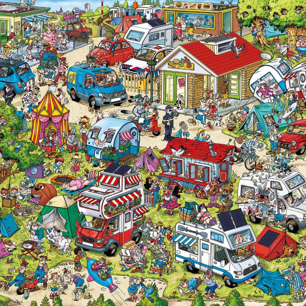The Campsite is a premium quality 1000-piece cardboard jigsaw puzzle from Ravensburger's Ray's Comic Series.